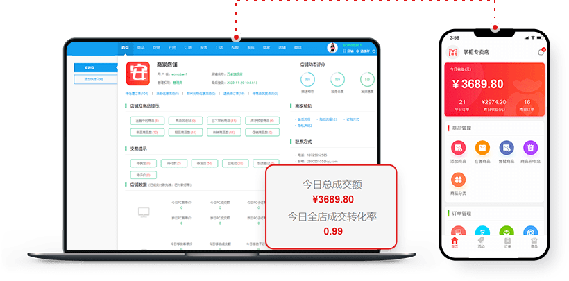 商家手机店铺后台,与PC端后台数据同步 让商家不止在PC端可以管理店铺信息,通过手机端同样可以随时修改