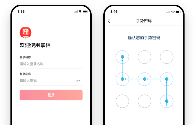 安全密码登录+手势解锁验证,为你的店铺数据提供更多安全保护