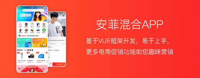 安菲科技混合APP的精美首页,此次经过设计团队改造以后,拥有更多丰富而出彩的广告位,让电商平台变得更有冲击力