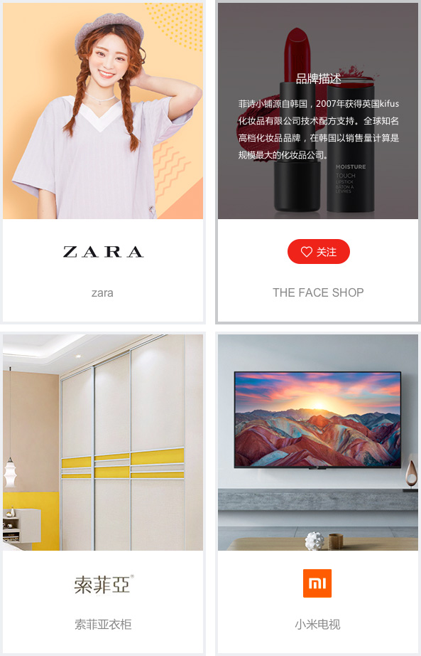 安菲科技平台拥有单独的品牌专区展示页,并且采用图文混排,让品牌展示更加大气
