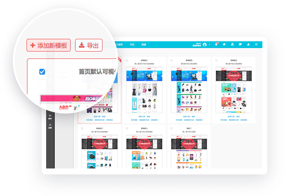 商家选择一套心仪的模板,通过简单的拖动、所见即所得的简单操作,即可轻松打造一套自己最满意的首页效果
